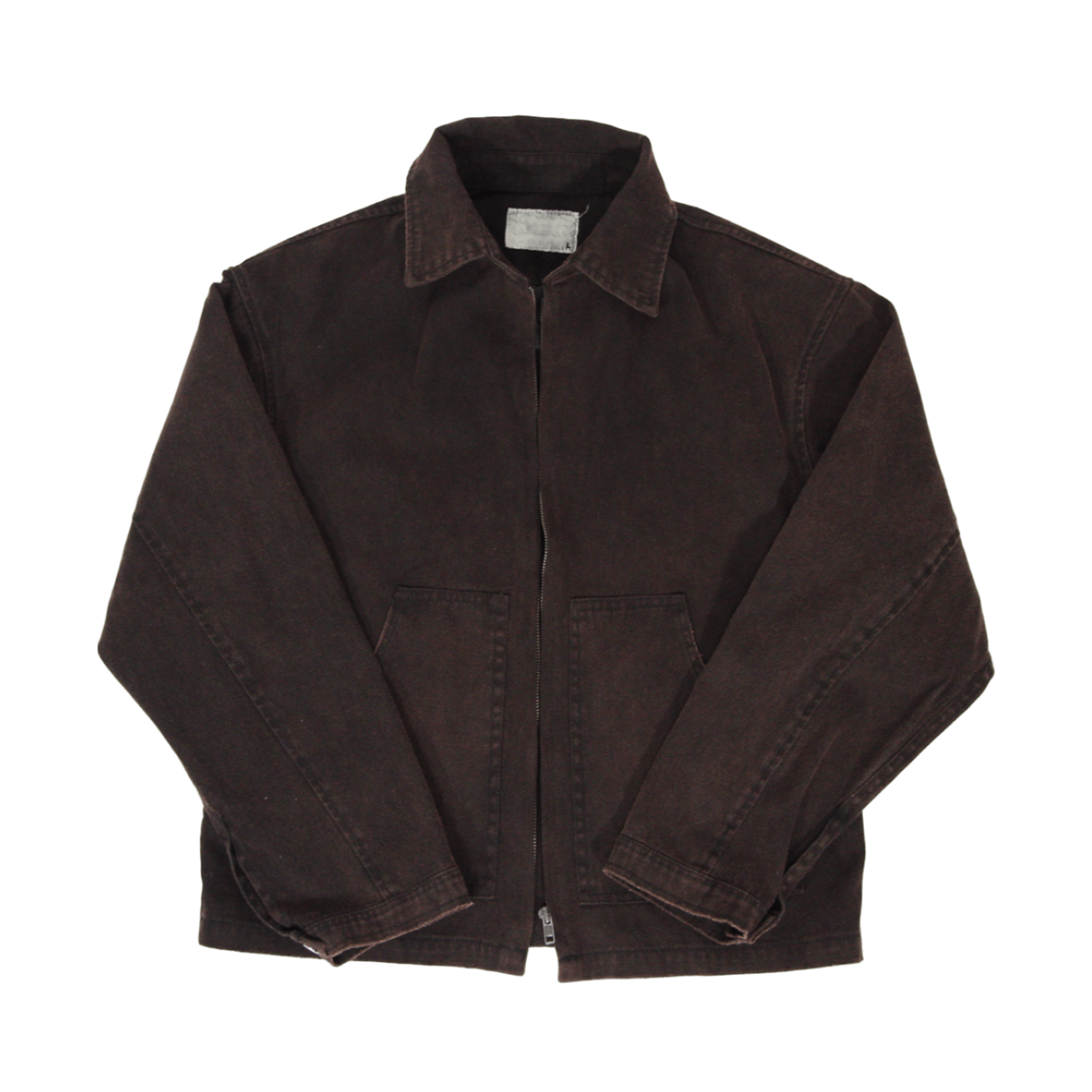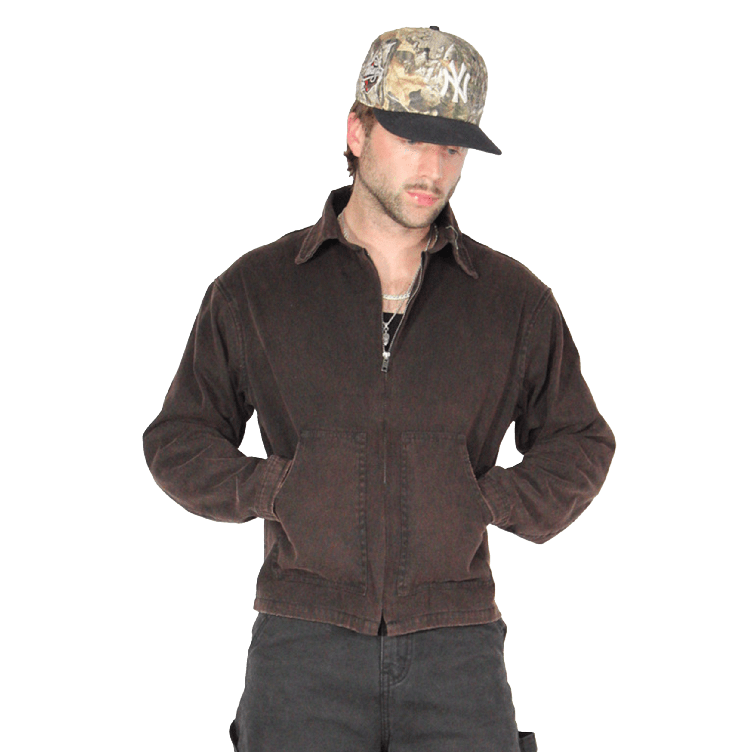 Our Carpenter Jacket features a modern, cropped fit made with a canvas washed mocha denim. True to size.